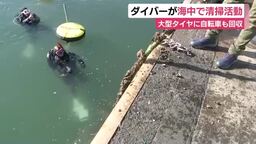ダイバーが海中で清掃活動 大型タイヤに自転車も回収