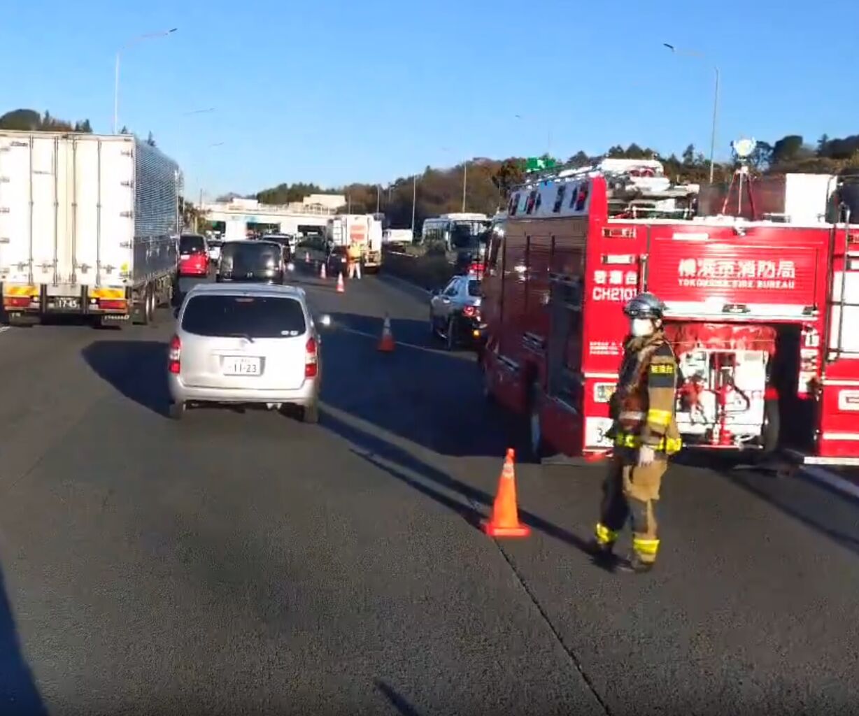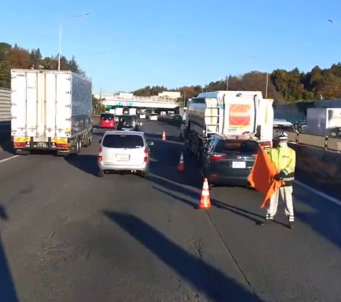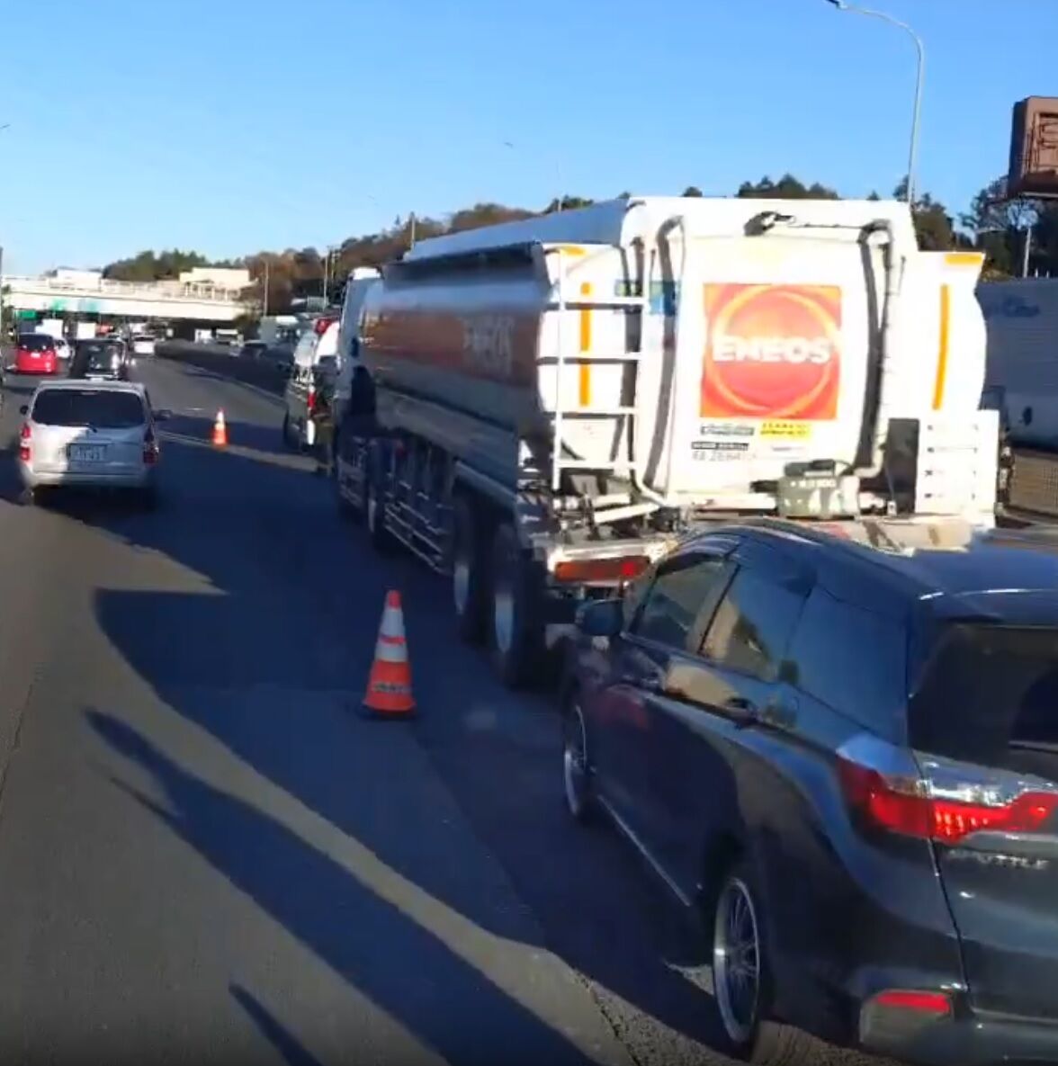 【現場の様子】#交通情報 保土ヶ谷バイパス 下り 下川井IC付近 乗用車とタンクローリー事故で規制渋滞12月5日 #横浜 #旭区 #保土ヶ谷バイパス