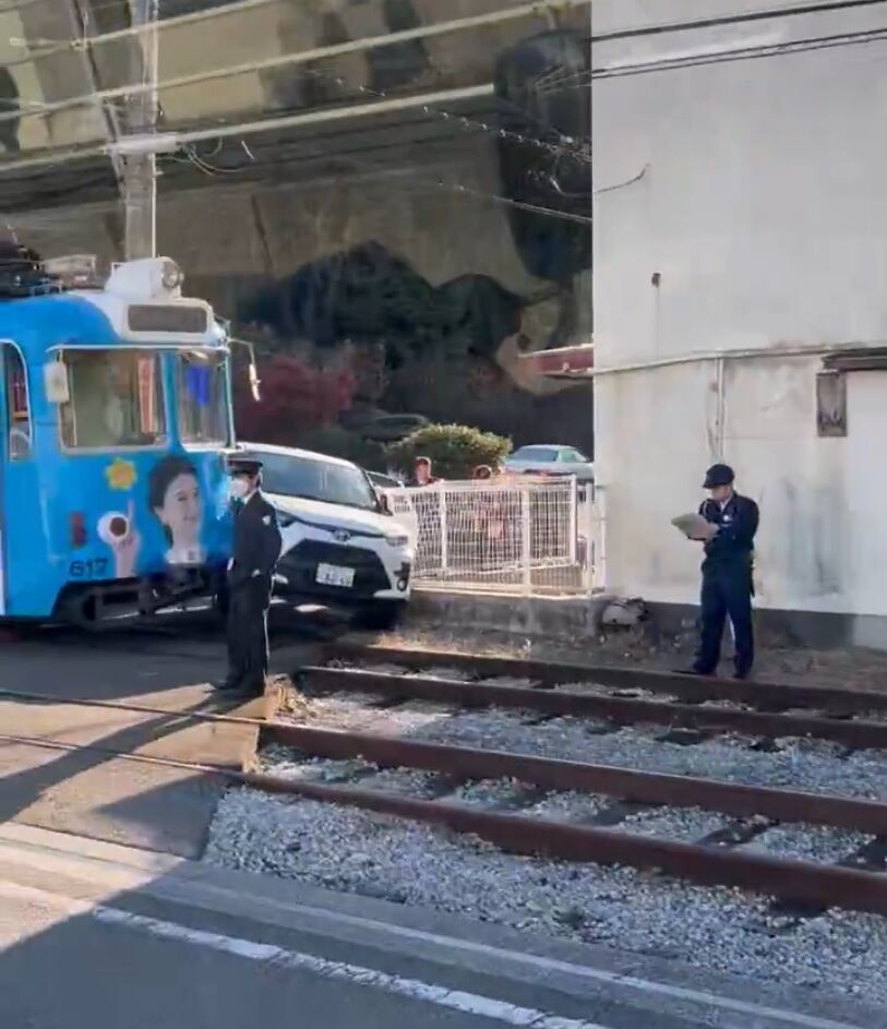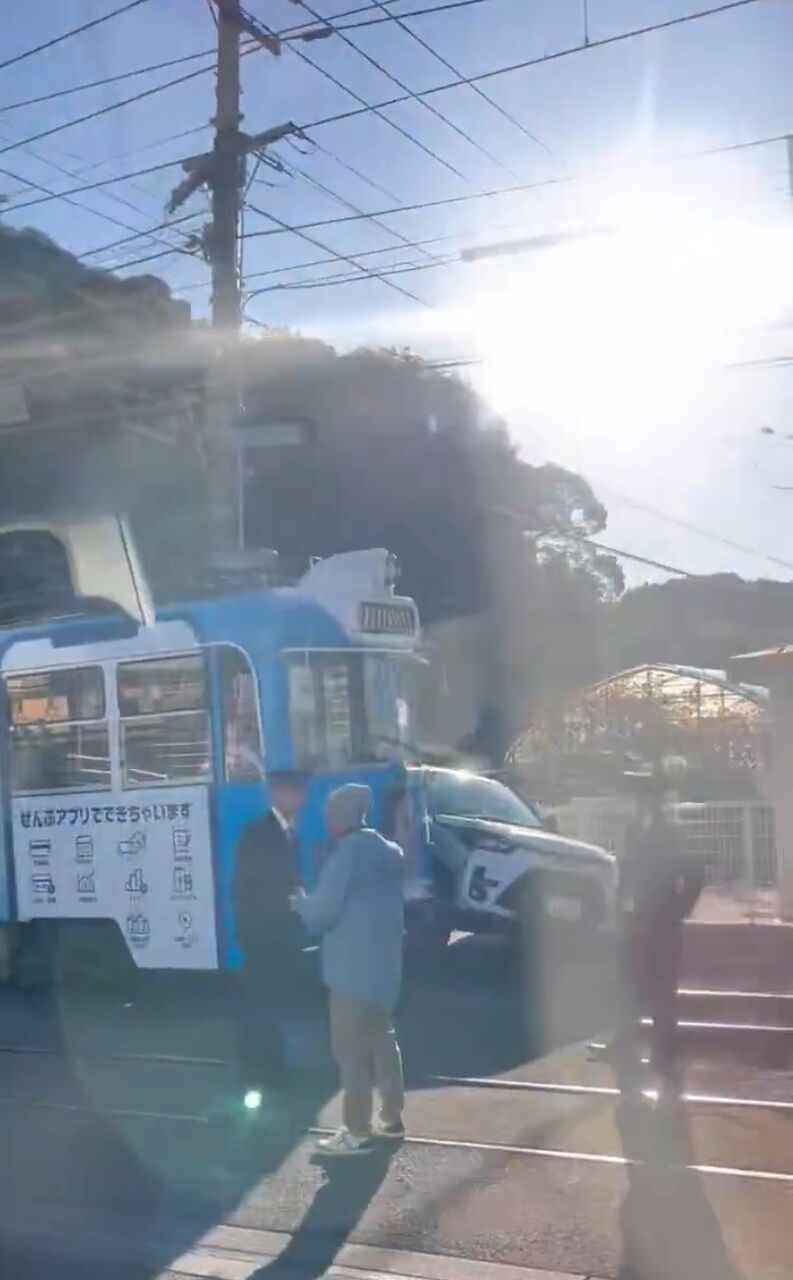 【現場の状況】とさでん交通後免線 領石通駅付近 路面電車と乗用車の衝突事故で運転見合わせ遅延12月6日 #とさでん #高知