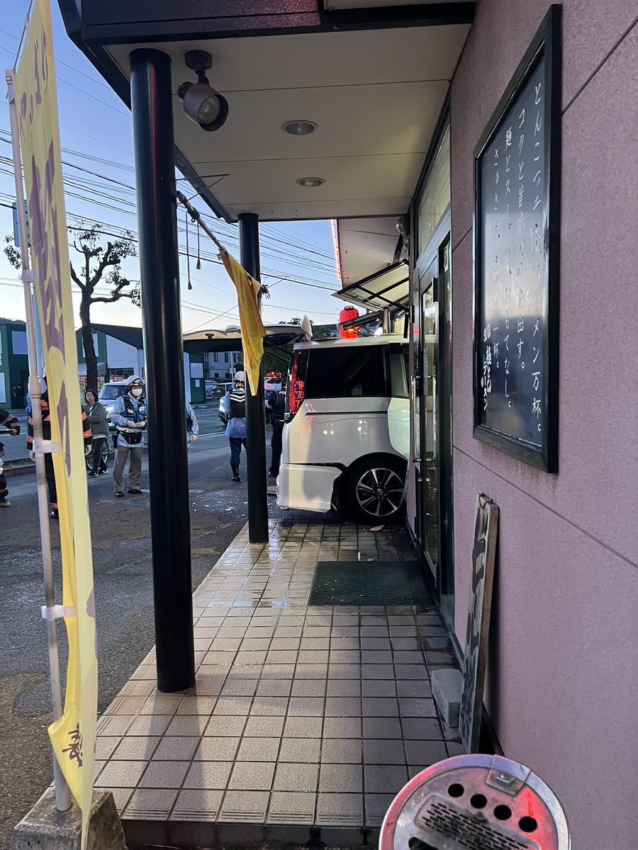 【現場の状況】#交通情報 広島県福山市西新涯町1丁目ラーメン店 極とんラーメン 西新涯本店に乗用車が突っ込む事故12月6日 #広島 #福山市 #ラーメン
