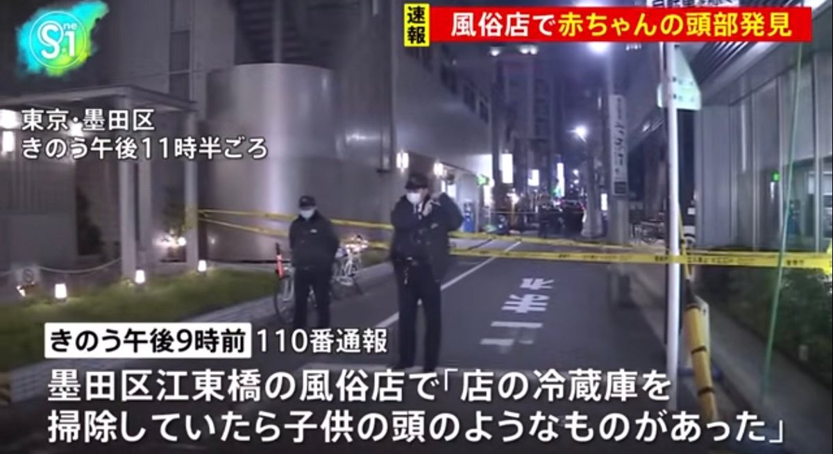 きのう午後9時前、墨田区江東橋の風俗店で「店の冷蔵庫を掃除していたら子どもの頭のようなものを見つけた」と男性従業員から110番通報がありました。