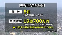 11月の県内企業倒産は5件 すべてが販売不振による「不況型倒産」 東京商工リサーチ「賃上げで収益圧迫される企業が増加」 福井
