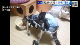 足が不自由なネコに「特別な車いす」広島国際大学の学生が動物の義足開発目指し研究会立ち上げ