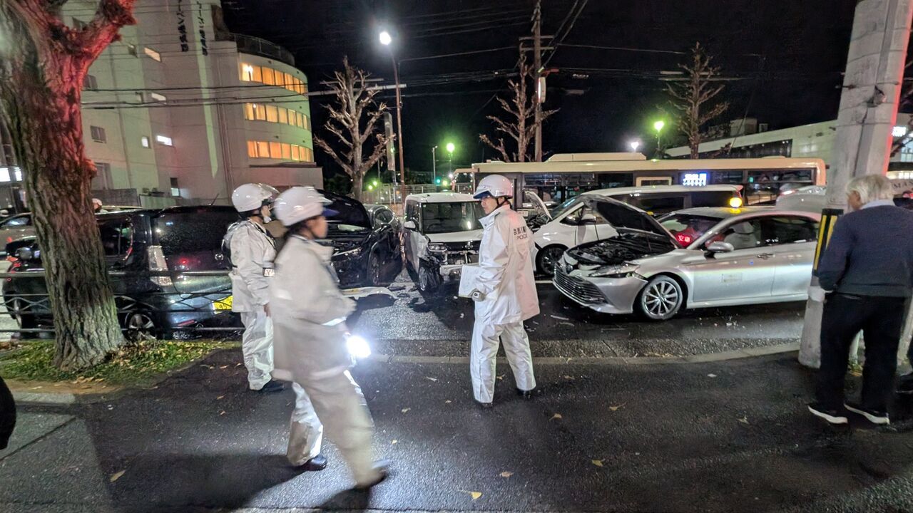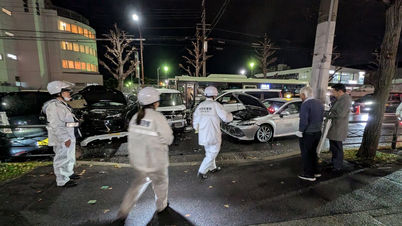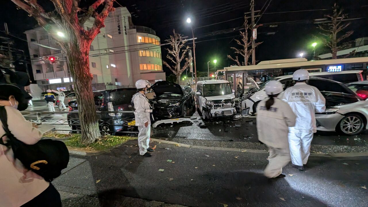 【現場の状況】#交通情報 丸太町通 京都府京都市右京区常盤東ノ町付近 乗用車や軽乗用車からむ多重事故 女児含む男女3人が搬送12月17日 #京都 #年末 #師走