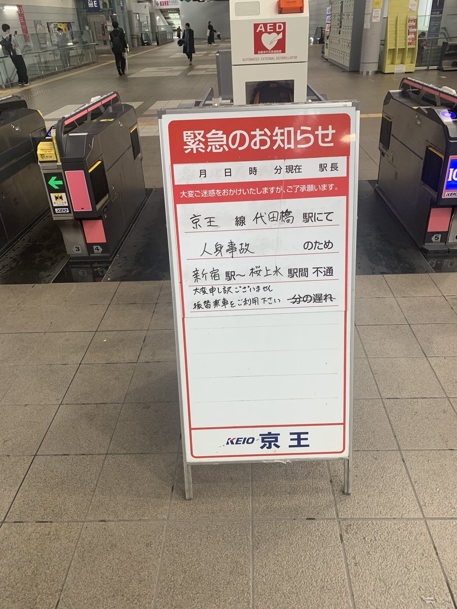 京王線の代田橋で人身事故のアナウンス。