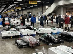 「こんなの見たことがない」異例の事態に漁業関係者も驚き…競りに並ぶ“大量のマグロ”100キロ超のサイズも10本以上_イワシの大群を追って漁場に集まった?〈北海道函館市〉
