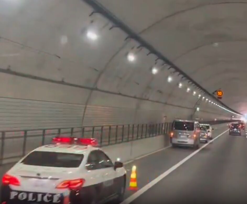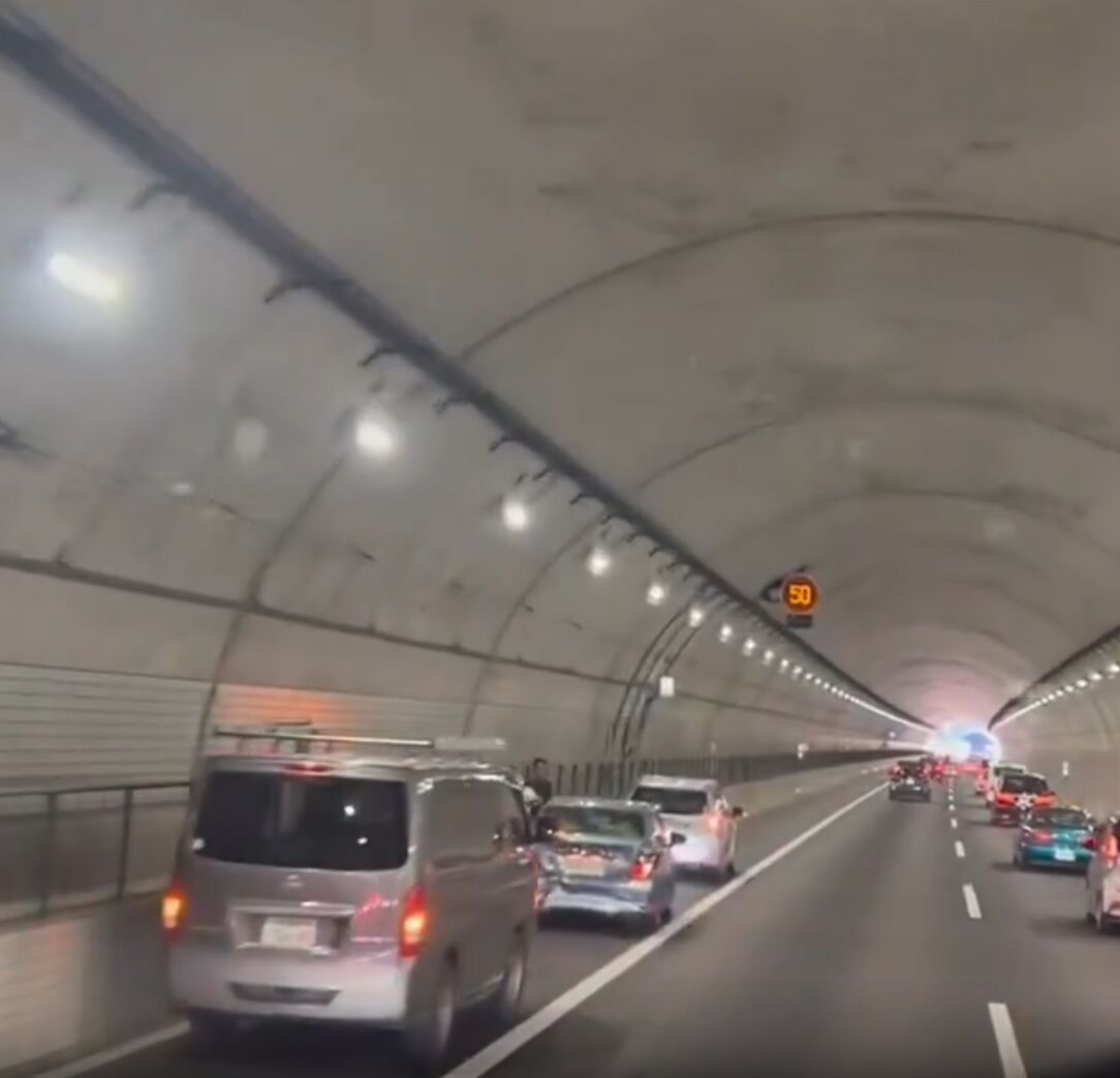 額堂山トンネル内で事故渋滞の列での玉突き事故2件発生中です