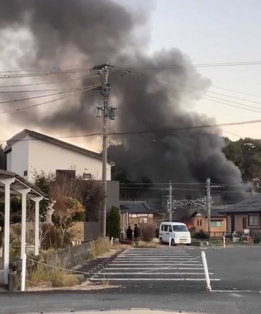 【火事情報】佐賀県三養基郡基山町小倉 基山駅北側付近 アパート建物から炎と黒煙あがる火災1月3日 #佐賀 #基山町 #火災