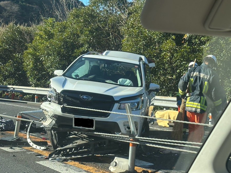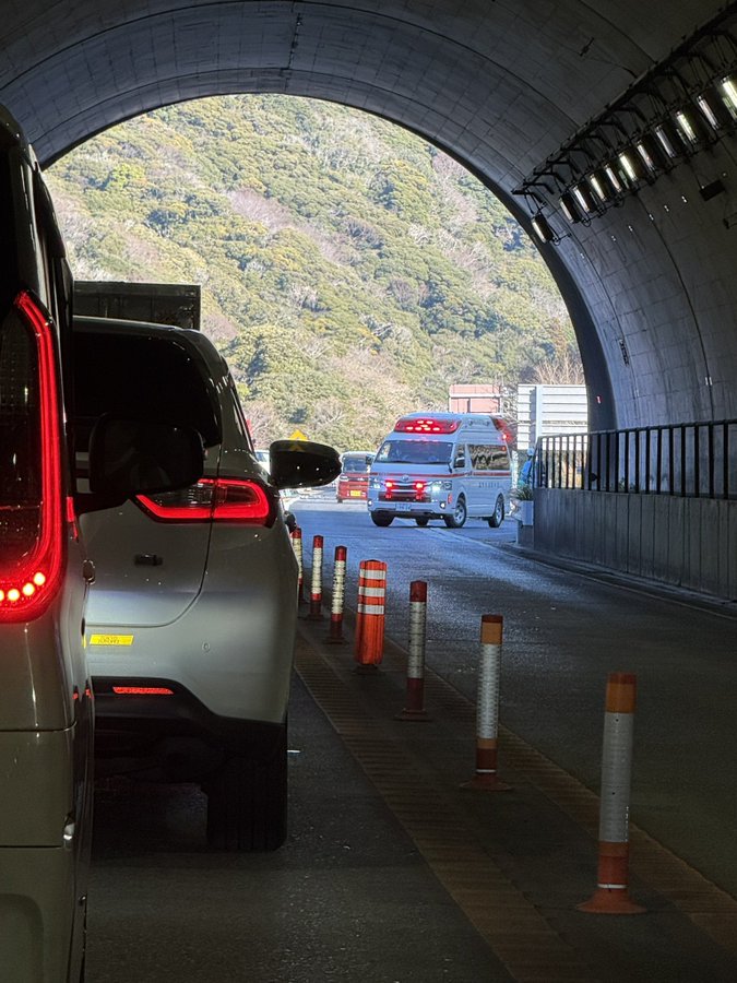 【現場の状況】#交通情報 富津館山道路 富津竹岡IC~鋸南保田IC付近 車線塞ぐ車両大破事故で通行止め渋滞1月4日 #千葉 #富津