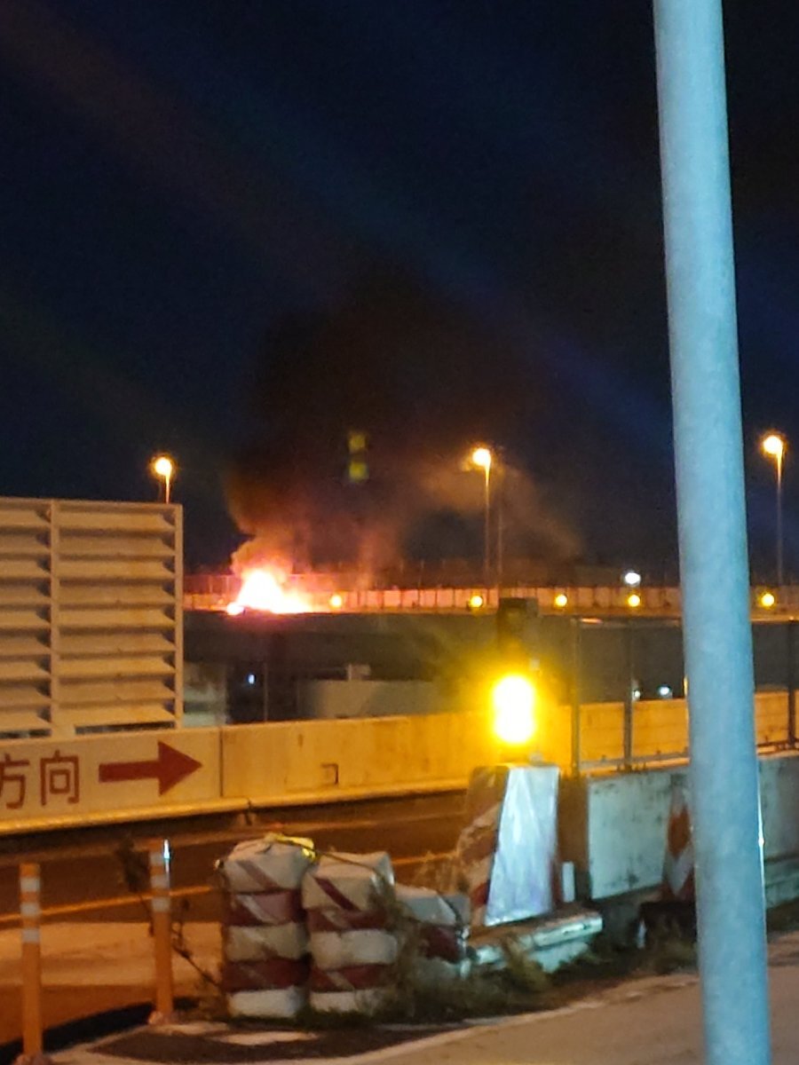 【火事情報】#交通情報 首都高湾岸線 東行き 辰巳JCT付近 乗用車燃える車両火災事故で通行止め1月5日 #首都高 #江東区 #火災