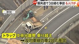トラックが中央分離帯を乗り越え反対車線の車2台と衝突 圏央道のカーブ曲がり切れず衝突…6人がけが 東京・八王子市