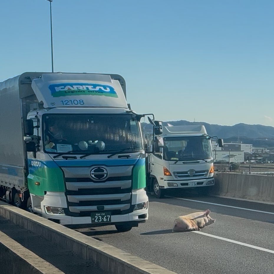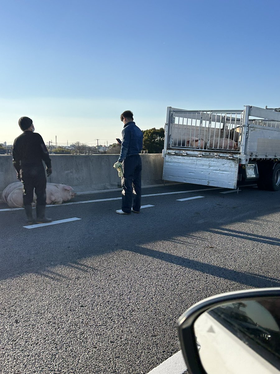 岡崎バイパスの上下線合わせて10台くらい白バイがいてなにごとかと思ったら道路に豚がいた