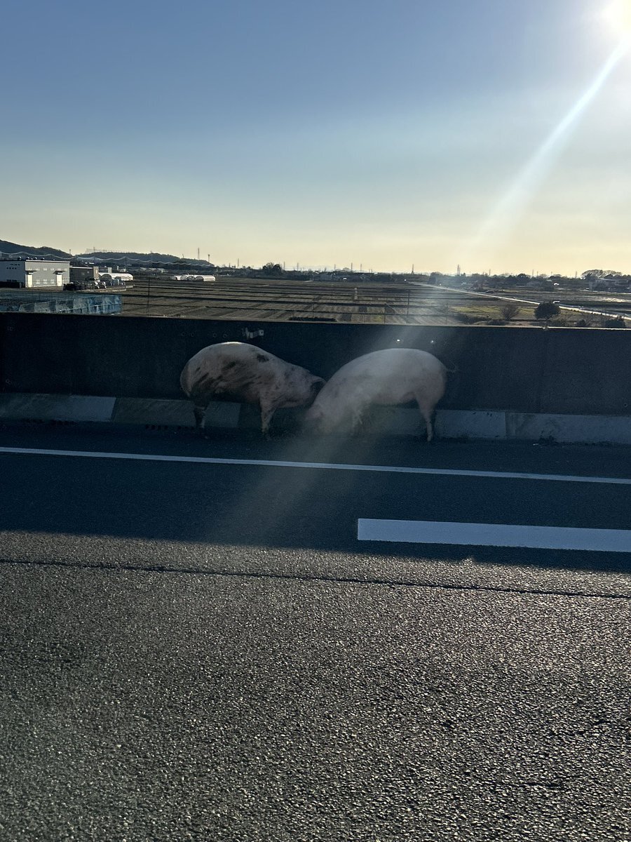 R23バイパス、豚さんが歩いてる🤣🤣🤣 pic.twitter.com/0qClKqqNO9