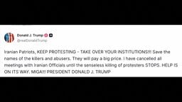 トランプ大統領SNS投稿 イラン反政府デモ「大きな代償を払う」「支援は間もなく到着する」さらなる介入示唆