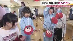小正月の伝統行事“だんごさし” 園児が大学生といっしょに飾り付け 五穀豊穣や無病息災願って 福島