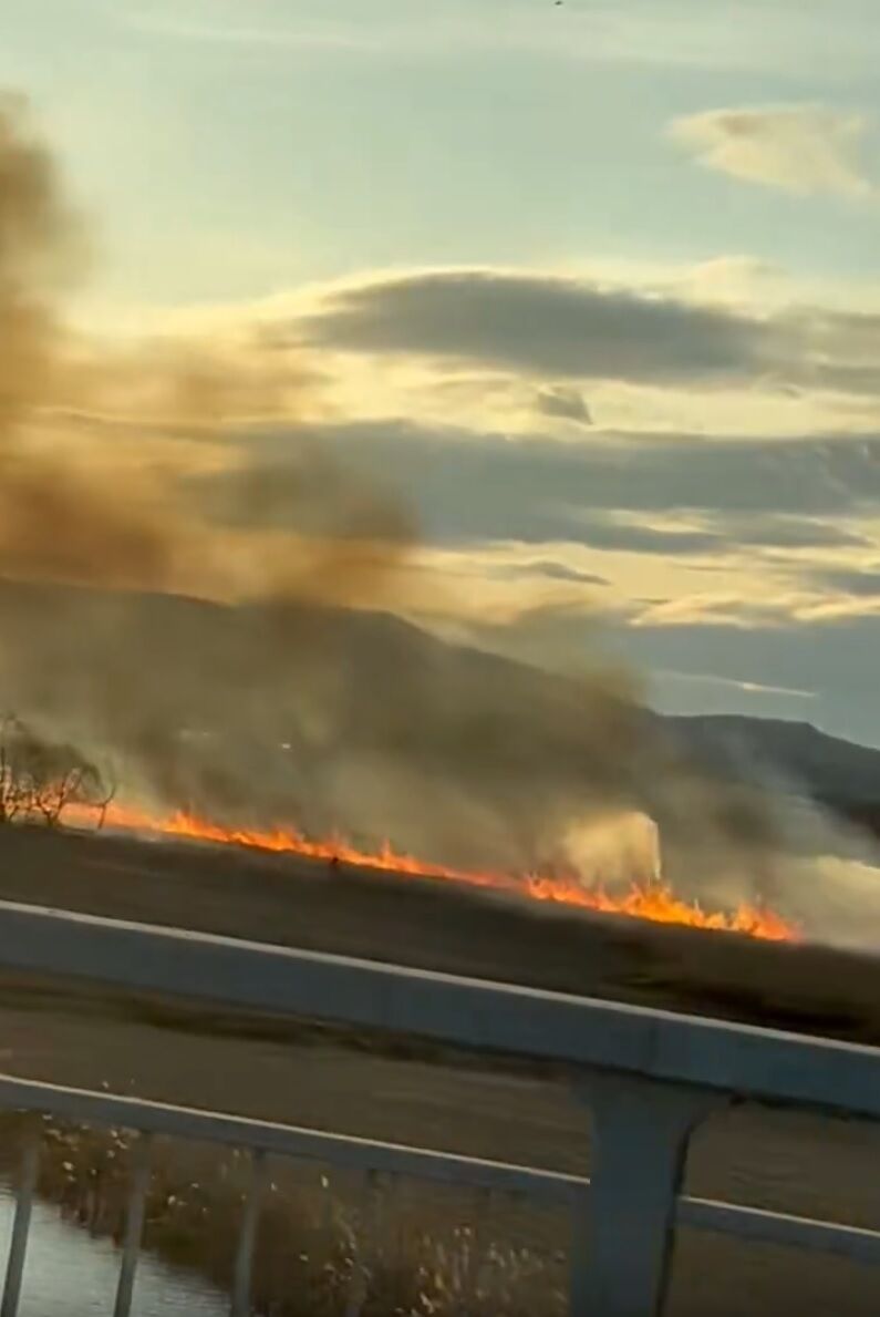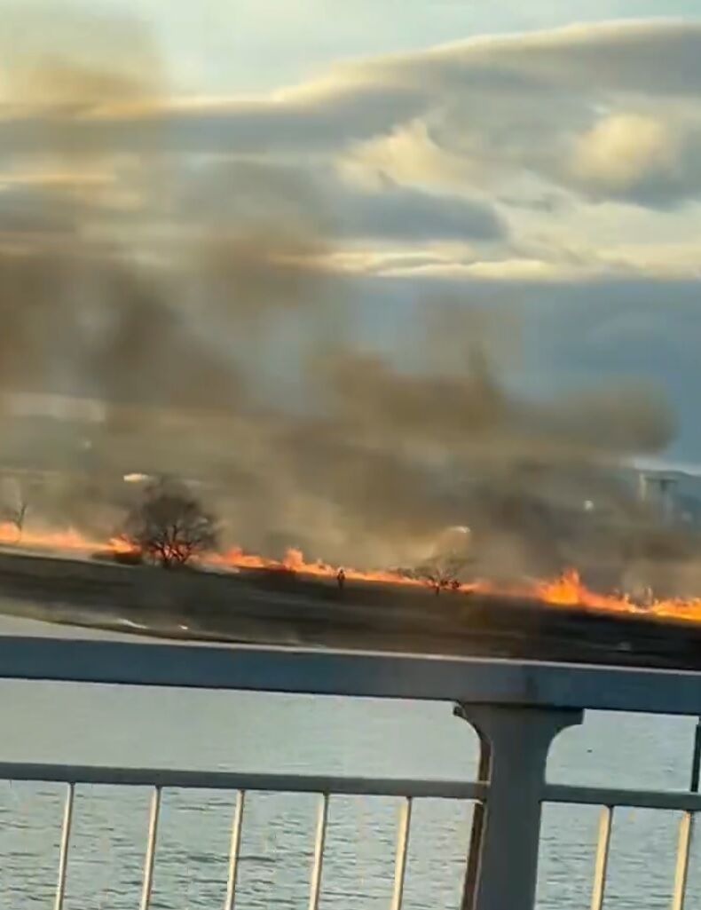 【火事情報】岡山県岡山市南区藤田 倉敷川橋付近 炎あがる枯草火災1月20日 #岡山 #倉敷川 #火災