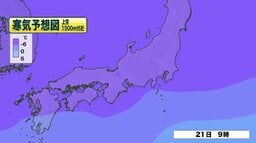 “最強寒波”襲来へ 上空 約1500メートルに氷点下9℃以下の強い寒気が流れ込む見通し 静岡県内でも21日未明から夕方にかけて積雪となる地点も 最高気温が10℃に届かないところも多い見込み