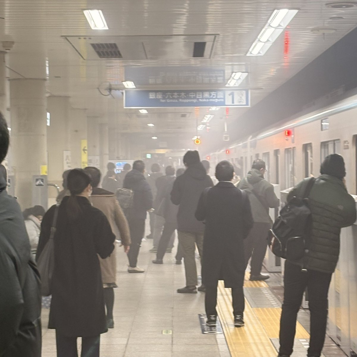 【目撃証言】『モバイルバッテリー火災で発煙』東京メトロ日比谷線 八丁堀駅での車内安全確認 #東武スカイツリーライン など遅延1月21日 #日比谷線 #火災