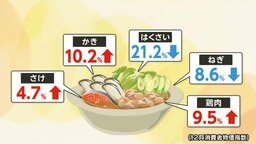 消費者物価指数4年連続で上昇…去年12月まで52カ月連続 鍋料理の食材に明暗…魚・肉類上昇も白菜は21.2%下落