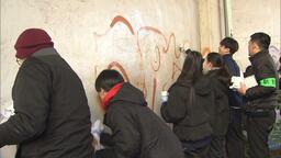 高校生と警察署員が地元の落書きを消す 「落書きは犯罪」と注意を呼びかけ 東京・目黒区