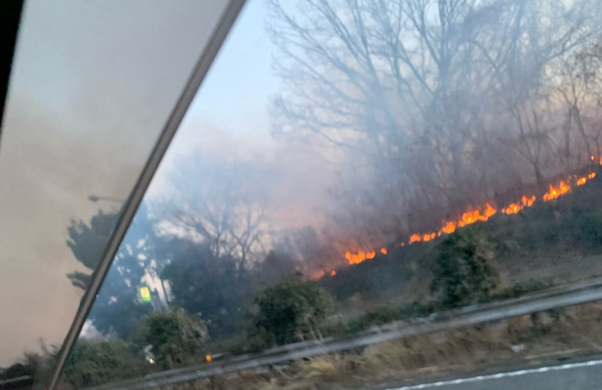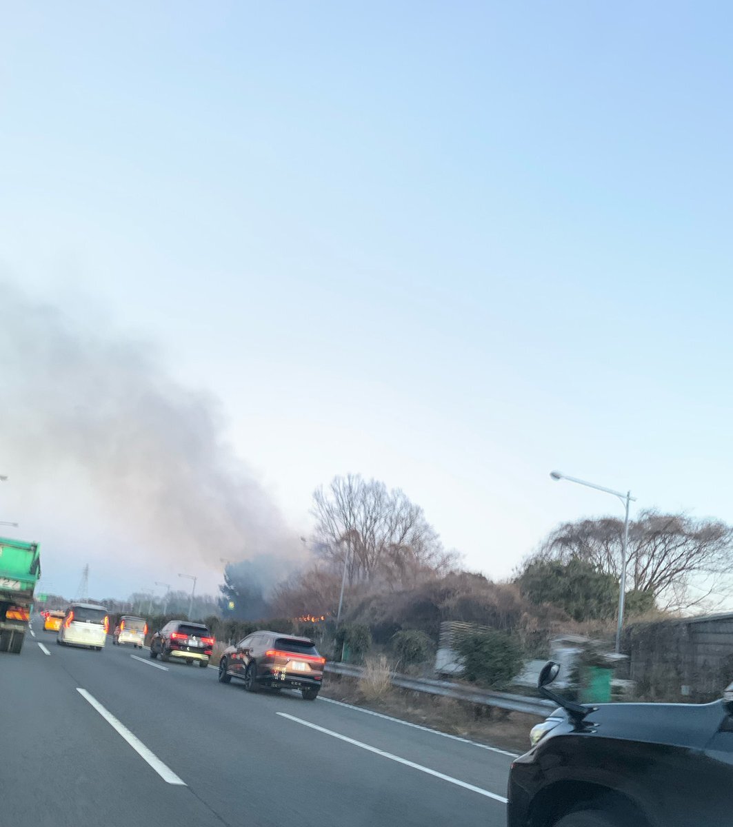 【火事情報】#交通情報 東名高速 下り 秦野中井IC~大井松田IC付近 炎あがる沿道火災 通行注意1月24日 #東名高速 #秦野 #火災
