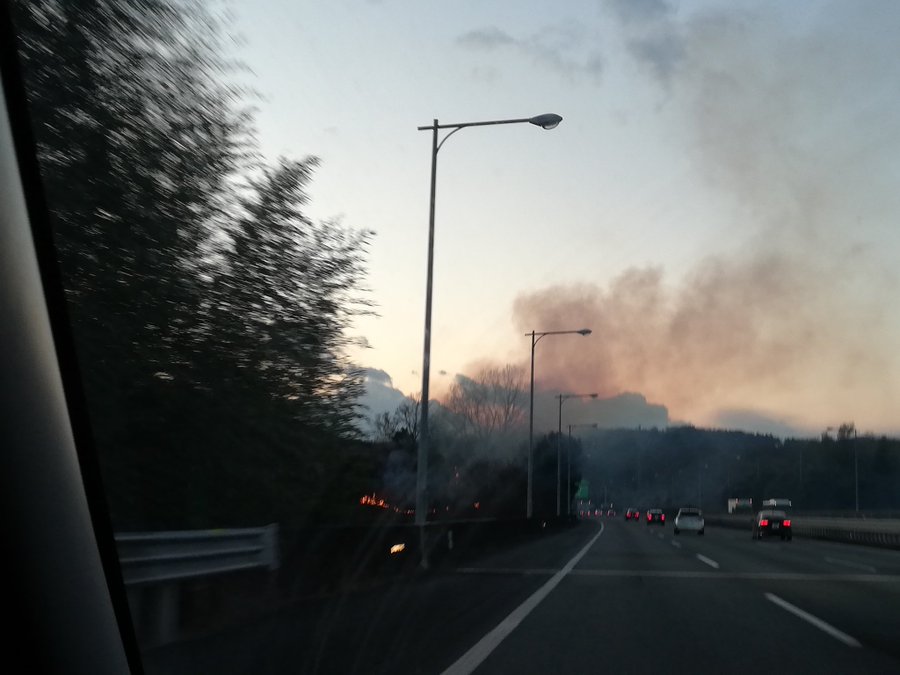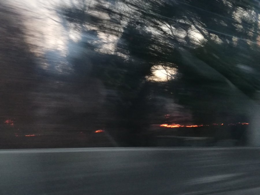 秦野中井インターから大井松田間で道路沿いの木が20〜30本燃えてた🔥