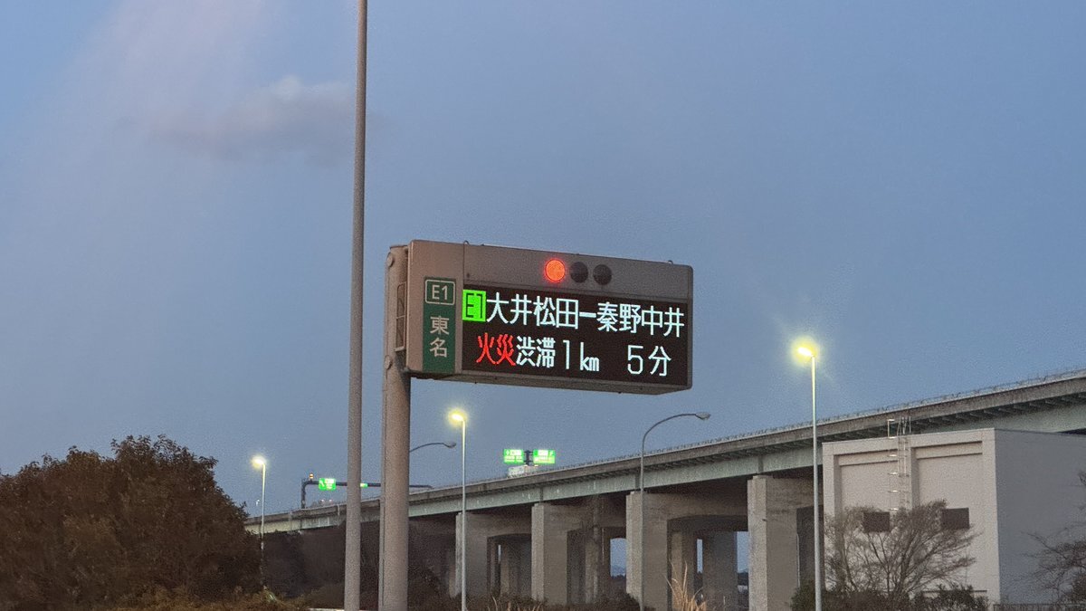 2026年1月24日 17時すぎごろ 神奈川県足柄上郡中井町境付近の高速道路に消防車が出動している目撃情報が寄せられた。