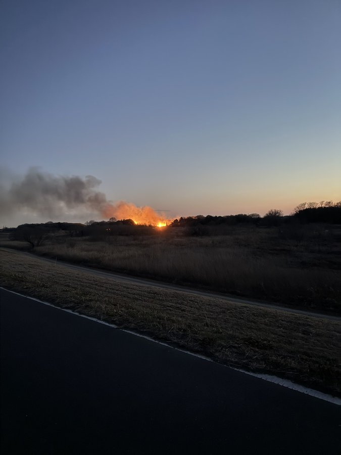 帰って来たら近場の土手の河川敷で火事発生しててやばい😰