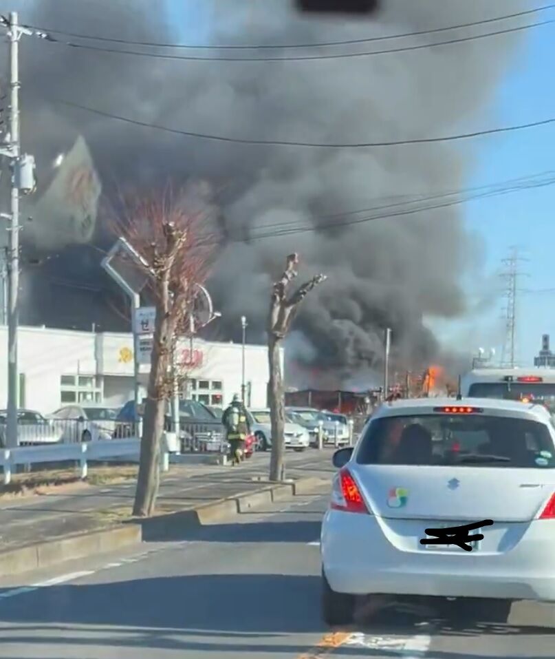 【火事情報】茨城県ひたちなか市田彦 付近 建物から炎と黒煙あがる火災 周辺道路渋滞1月24日 #茨城 #ひたちなか #火災