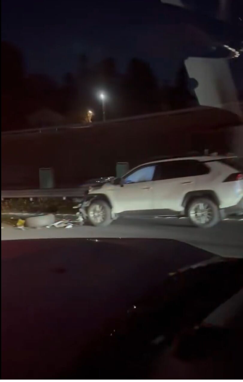 単独だと思ってビデオ止めちゃったけど、この前に3台いて、合計4台がけっこうボコボコのまぁまぁひどい事故でした