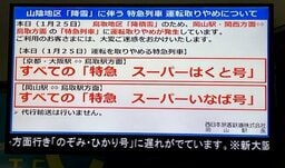 【大雪・交通情報】岡山・関西~鳥取 特急「スーパーいなば」「スーパーはくと」全便運休