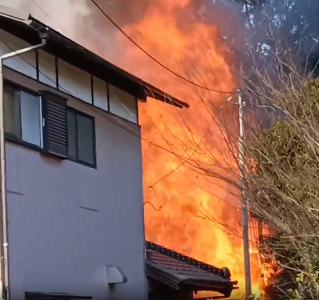 【火事情報】千葉県鎌ケ谷市初富 風間街道沿い付近 建物から炎あがる火災 周辺道路交通規制1月26日 #千葉 #鎌ケ谷市 #白井 #火災