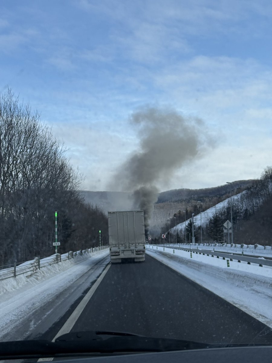 【現場の状況】#交通情報 旭川紋別自動車道 北海道紋別郡遠軽町付近で都市間バス燃える車両火災1月27日 #北海道 #遠軽町 #火災