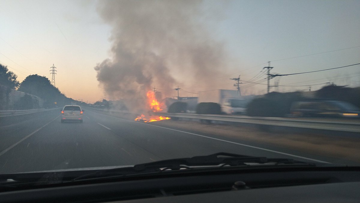 九州自動車道 熊本IC付近で火事 通行の方は注意を!