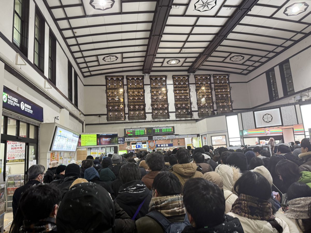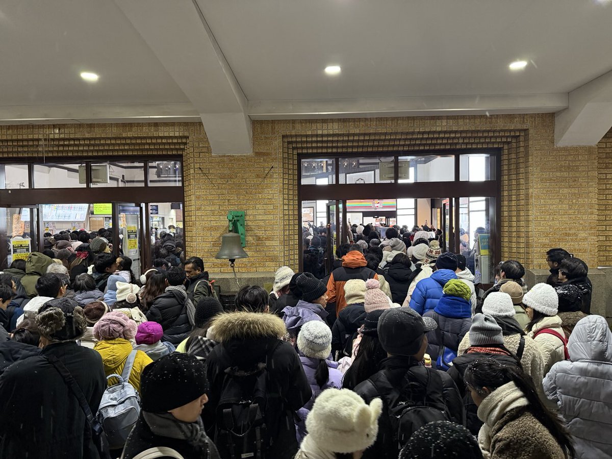 『小樽駅、外も改札の中も構内も通路もぎっしり…』