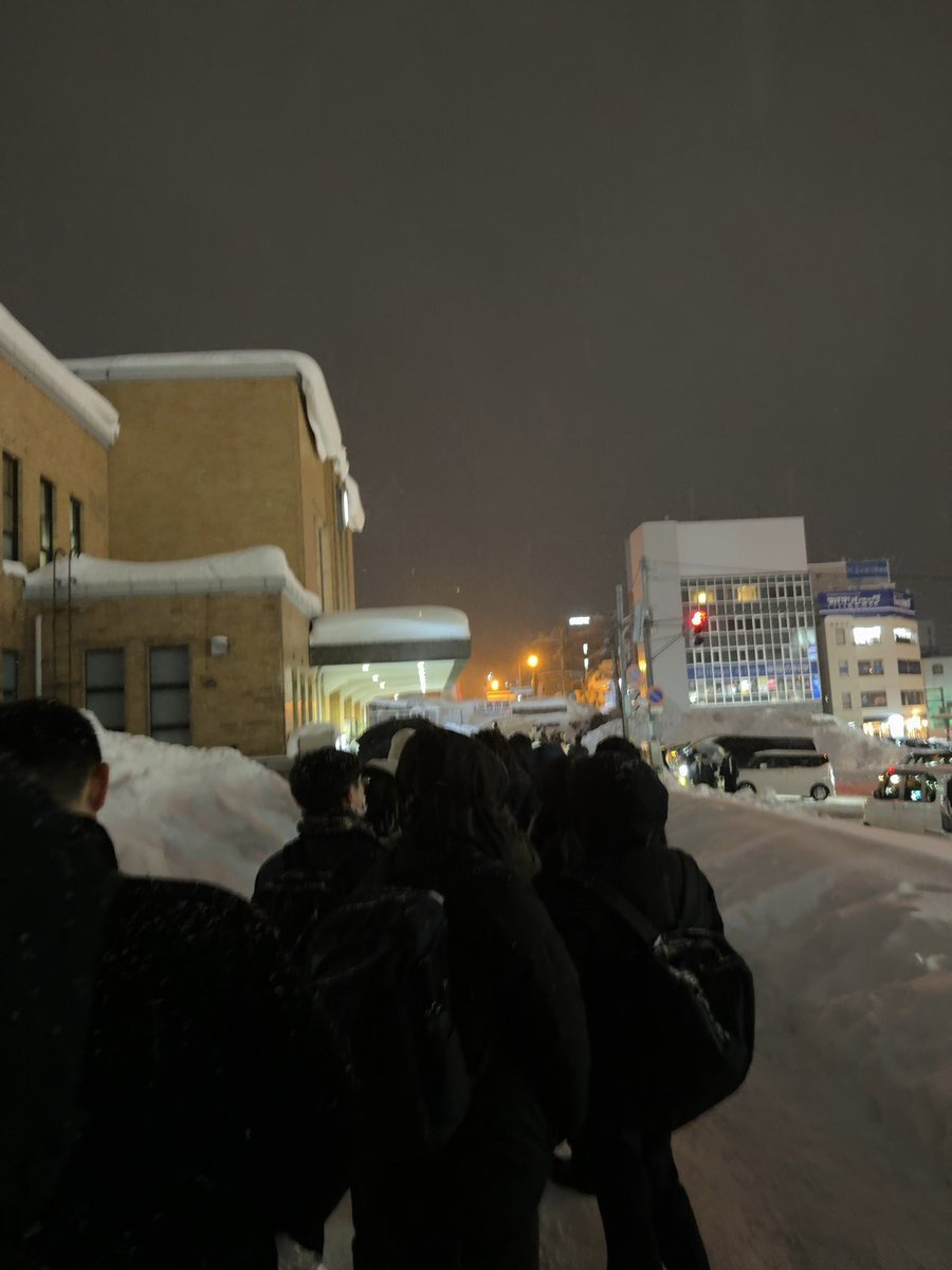 【現場の状況】『真冬の北海道で入場待機列』#函館本線 朝里~銭函駅間 鹿と普通列車の衝突事故で遅延 JR小樽駅が入場規制で行列1月28日 #北海道 #小樽 #寒波