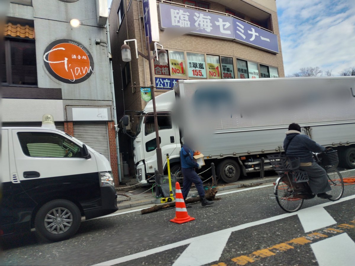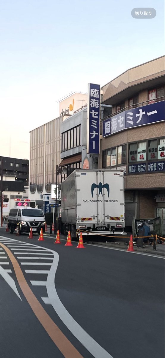 【現場の状況】#交通情報 県道57号線 神奈川県相模原市中央区上溝5丁目付近 歩道にトラック突っ込む事故1月28日 #相模原 #上溝