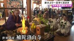 世界遺産・補陀洛山寺で節分を前に一足早い豆まきと餅まき