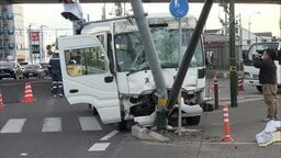 自動車教習所の送迎マイクロバスが信号機に突っ込む事故…3人搬送もいずれも軽傷 茨城・水戸市