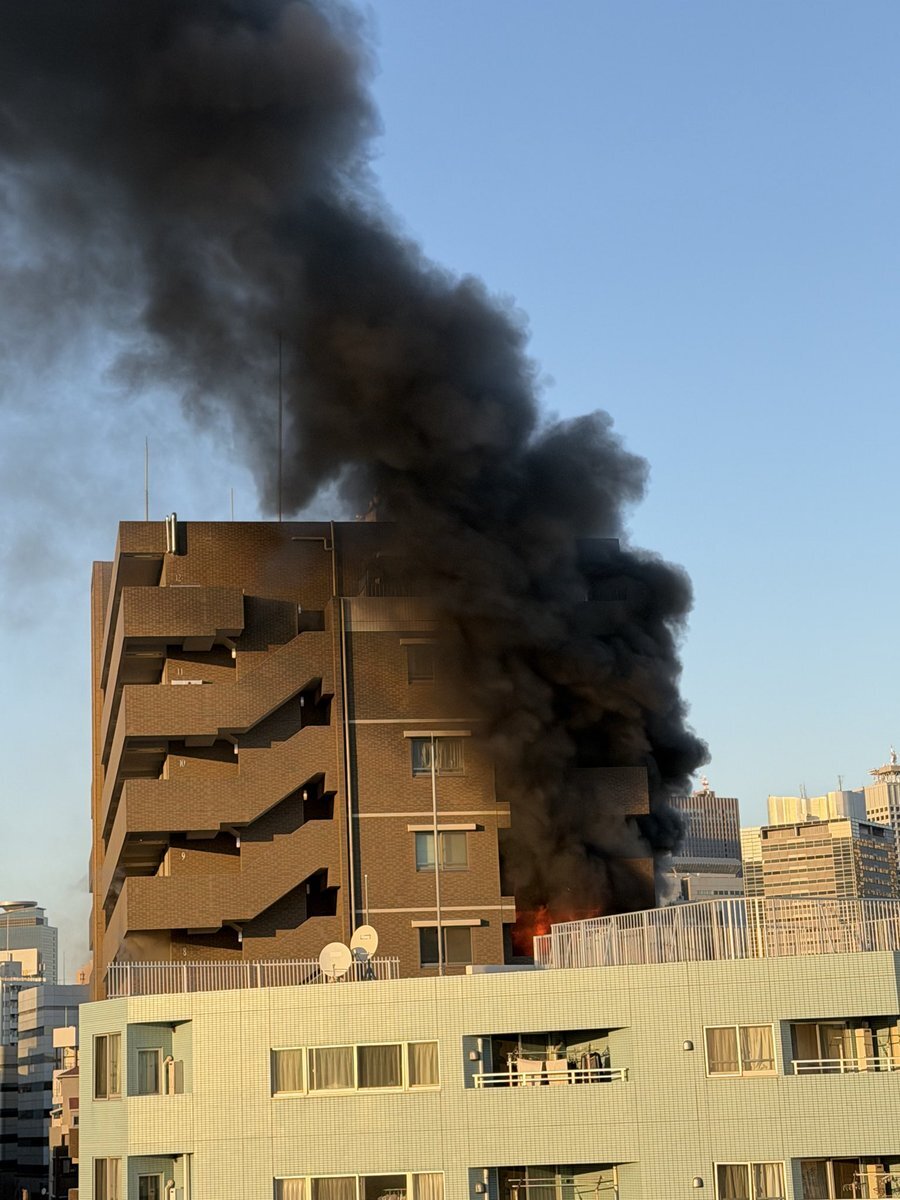 【火事情報】東京都渋谷区代々木4丁目 山手通り沿い付近 集合住宅建物から炎と黒煙あがる火災2月1日 #渋谷区 #代々木 #初台 #参宮橋
