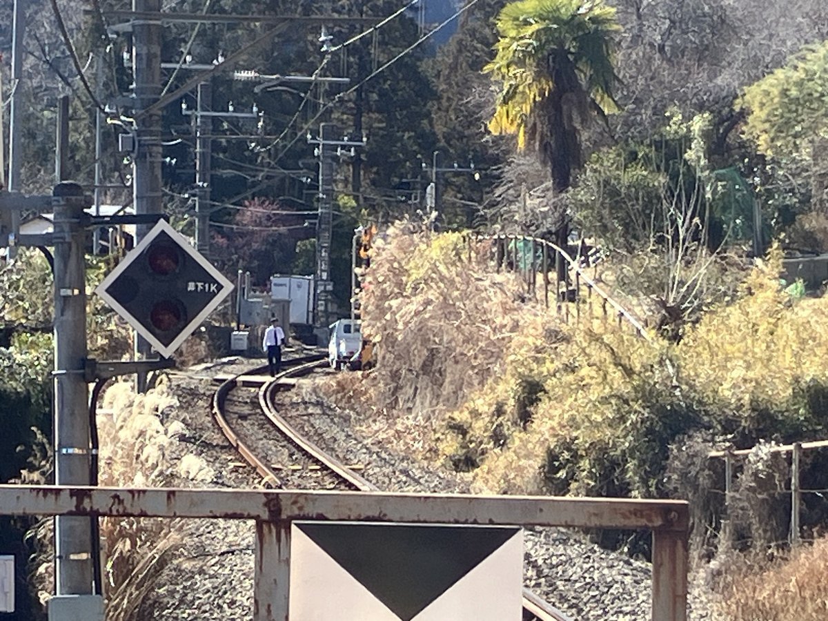 【現場の状況】『軽トラが線路に入ってる』#青梅線 軍畑〜沢井駅付近 線路に車両進入 運転見合わせ遅延2月1日 #青梅