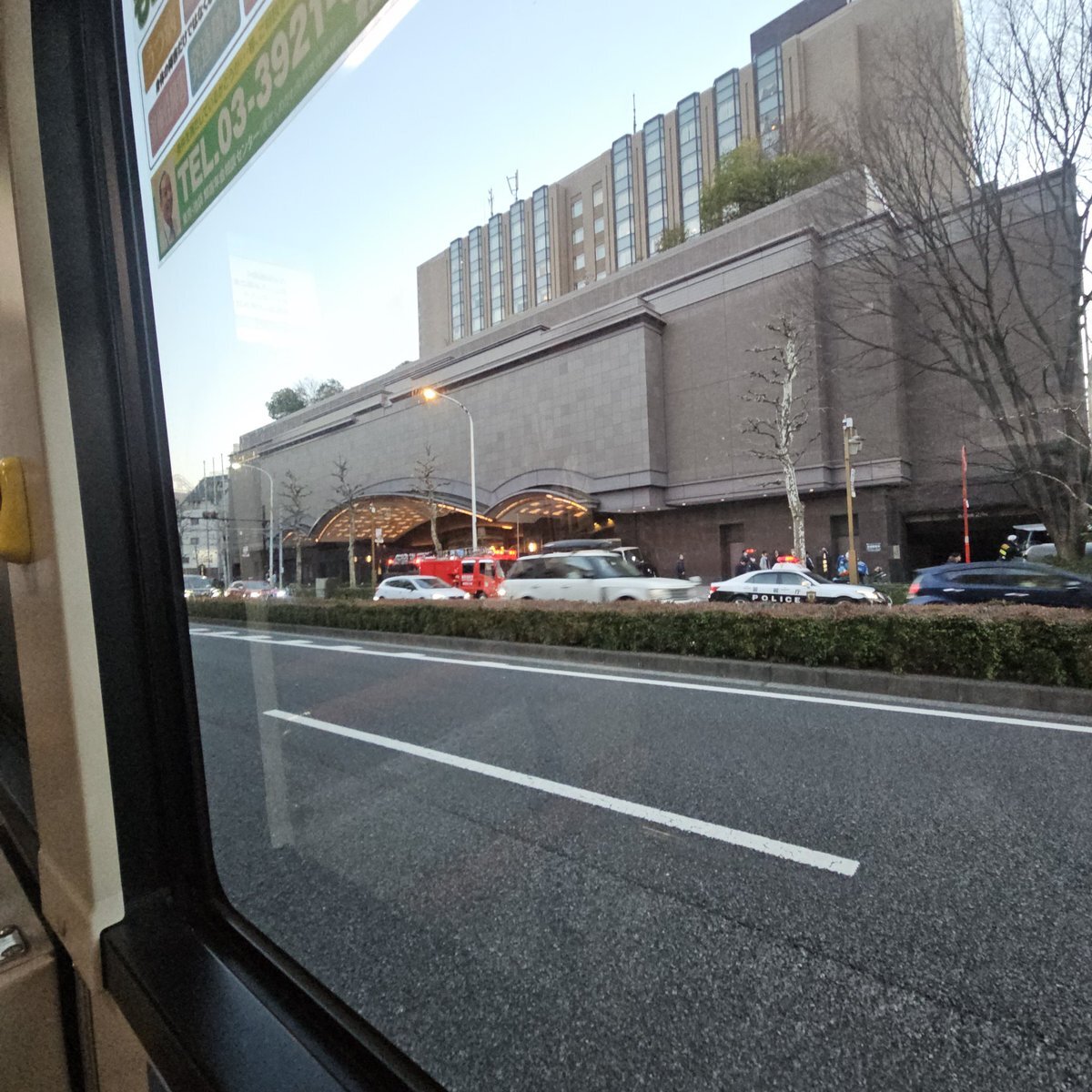 『リーガロイヤルホテルに車が突っ込み、警察や消防、救急車が駆け付けて救命処置しているよう』