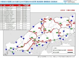 【注意・大雪】中国地方の国道・高速道路 通行止めの可能性がある区間発表 中国地方整備局