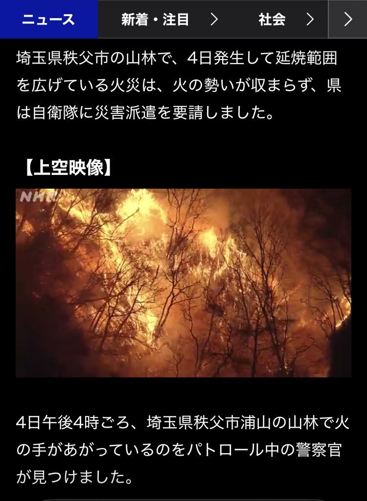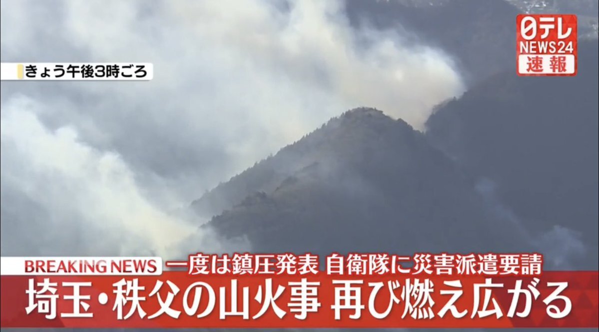 【火事情報】埼玉県秩父市浦山の林野火災 再び燃え広がり自衛隊に災害派遣要請 炎があがっている模様2月6日 #埼玉 #秩父 #山火事 #山林火災