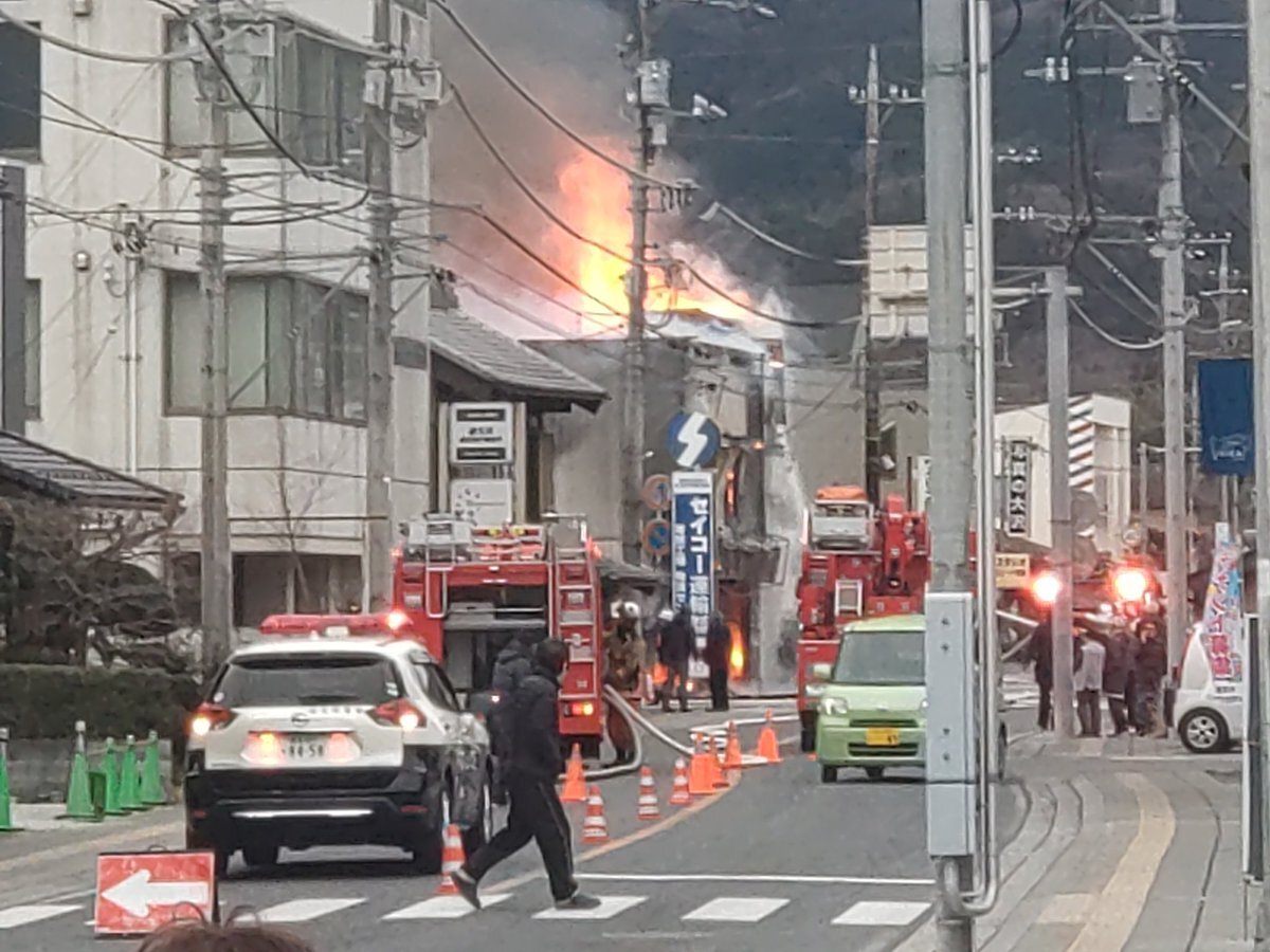 【火事情報】埼玉県大里郡寄居町寄居 市街地通り沿い建物から炎と煙あがる火災 周辺道路交通規制2月7日 #埼玉 #寄居町 #火災