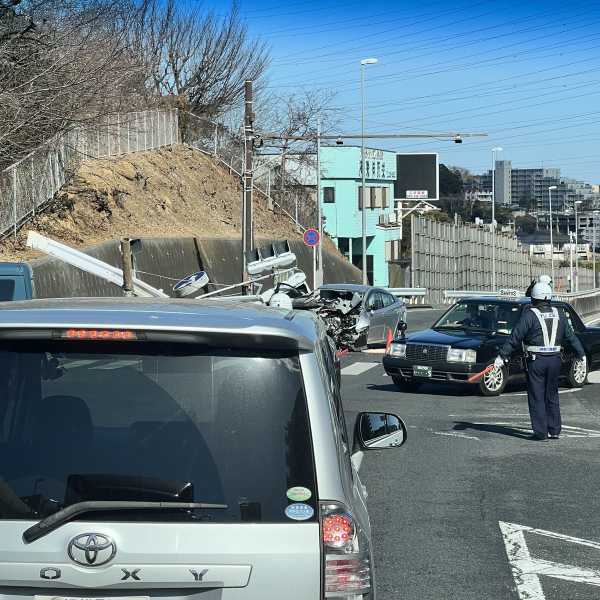 【現場の状況】#交通情報 国道1号線 神奈川県横浜市戸塚区戸塚町 戸塚警察署付近 信号機なぎ倒す車両大破事故で通行止め渋滞2月9日 #横浜 #戸塚