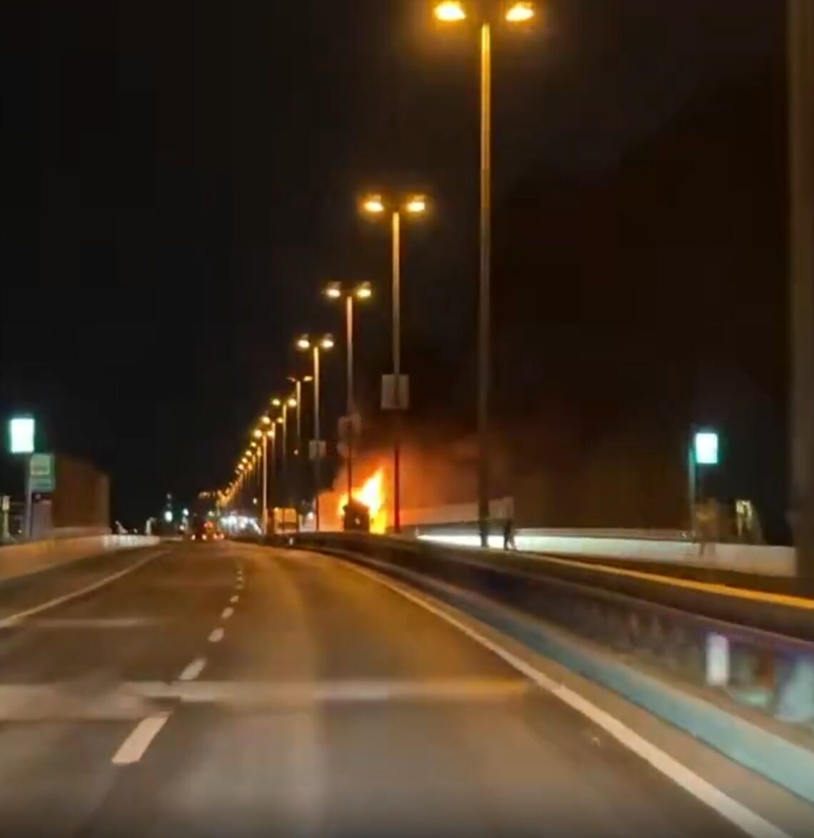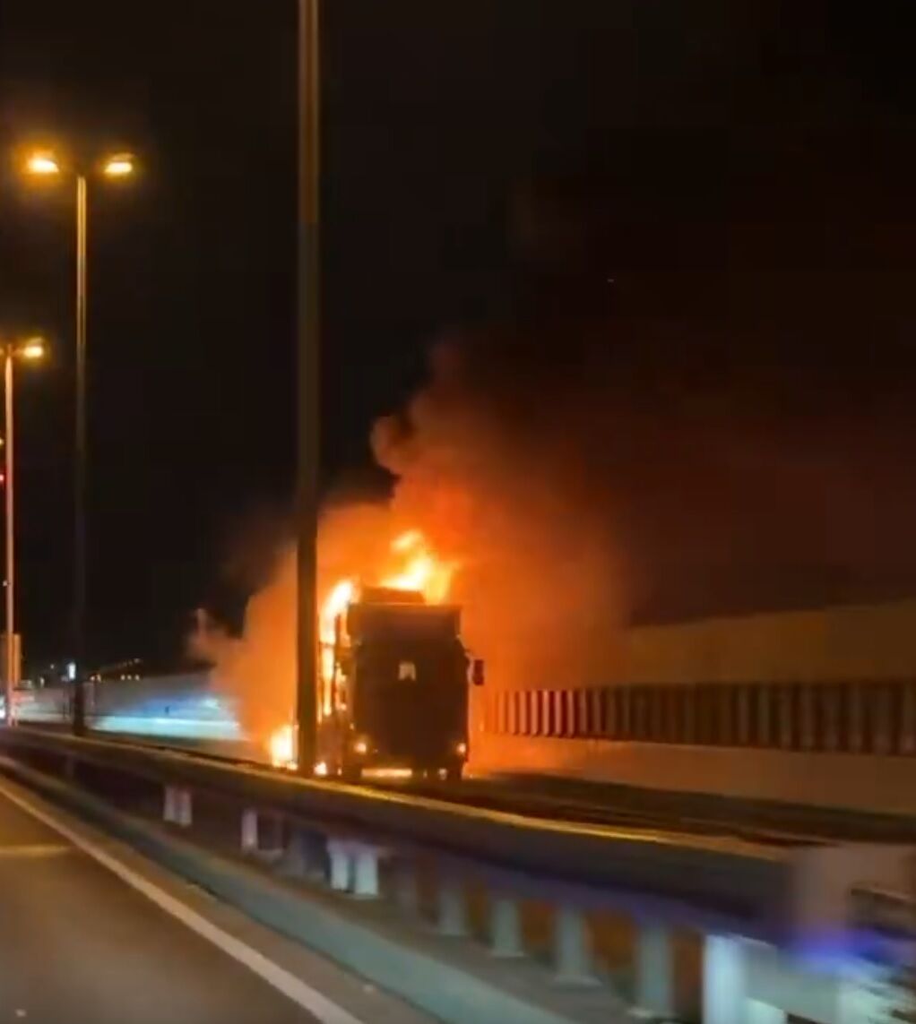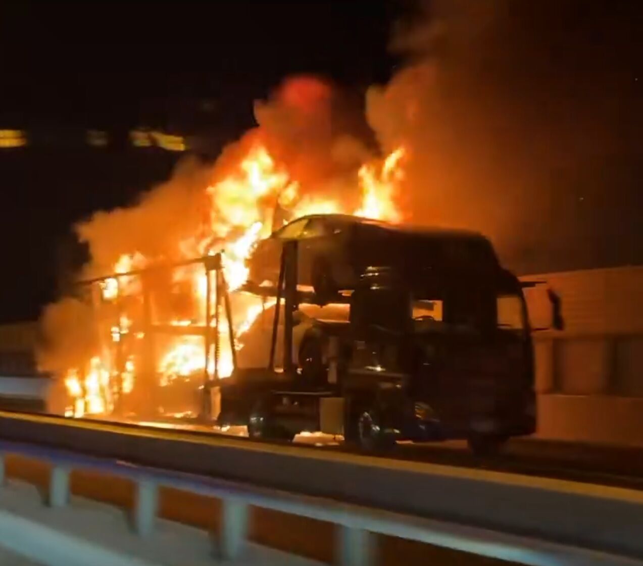 朝から帰宅中に首都高でキャリアカーが炎上…