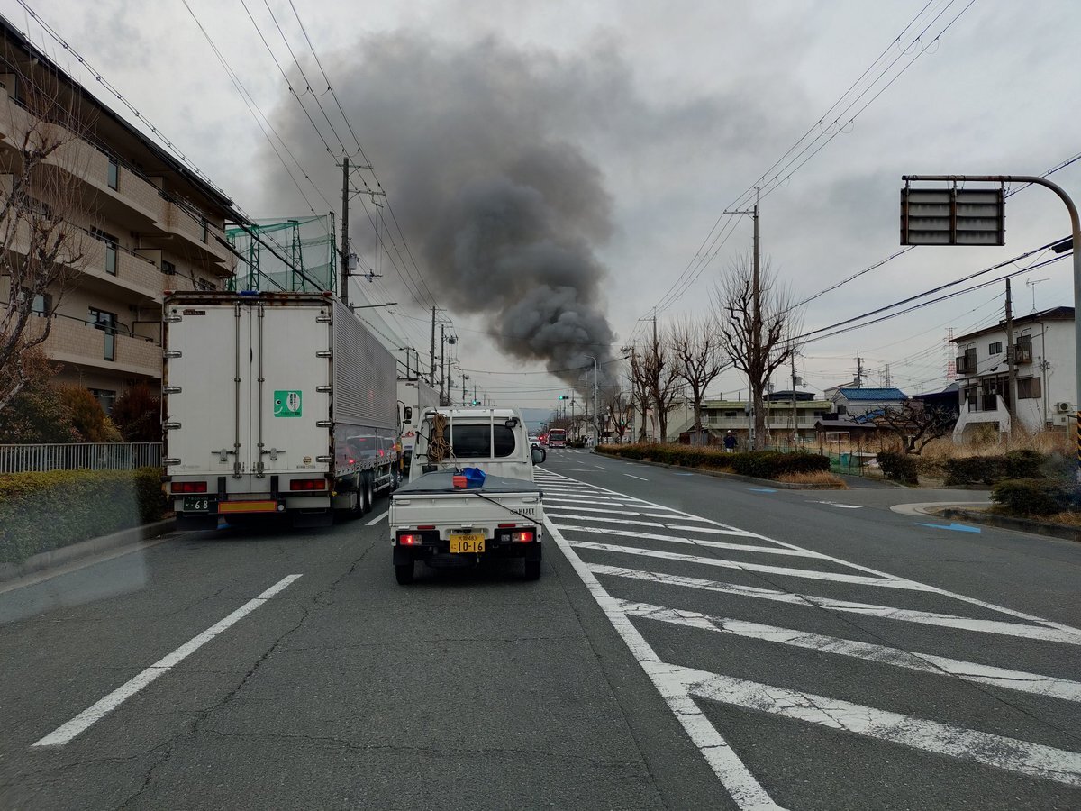【火事情報】大阪府茨木市新堂3丁目付近 建物から黒煙あがる火災2月10日 #大阪 #茨木 #火災