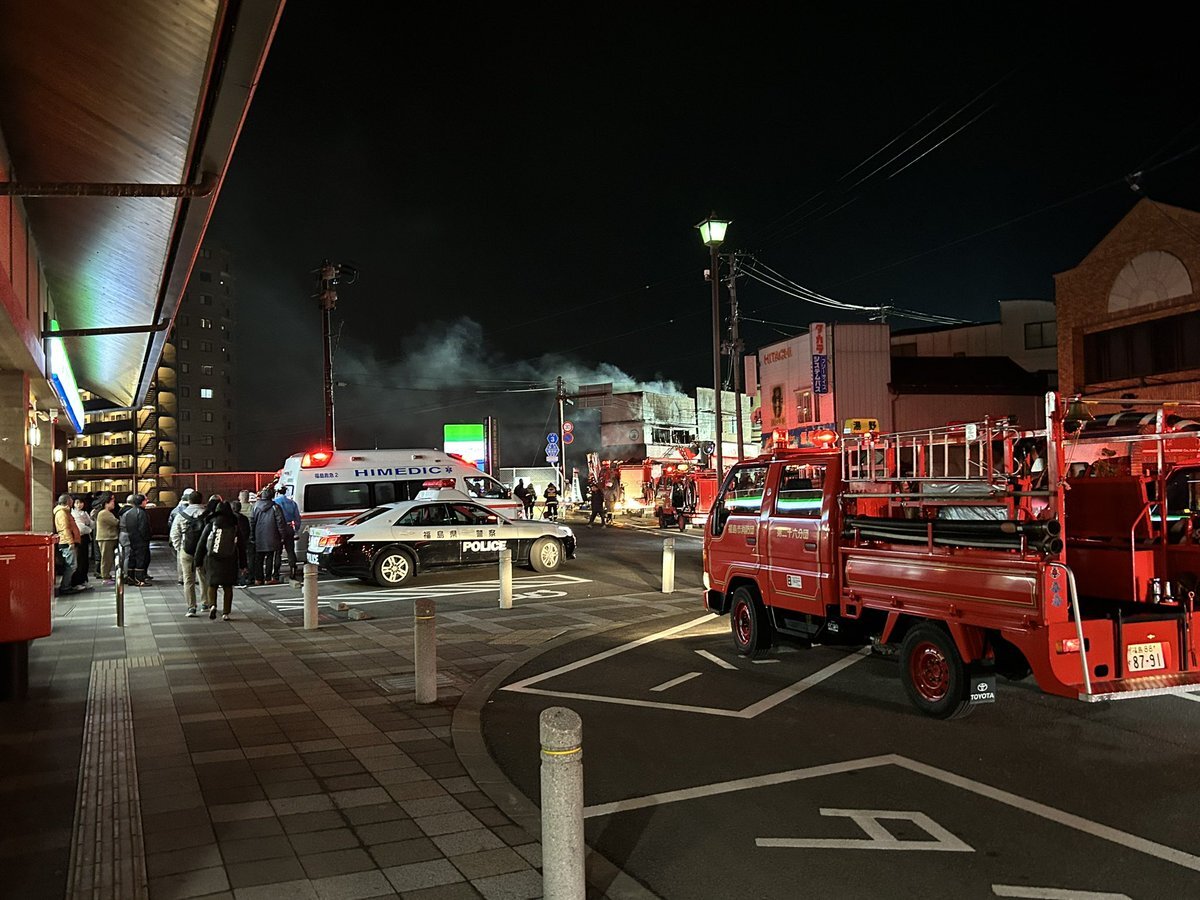 【火事情報】福島県福島市飯坂町十綱町 飯坂温泉駅前付近 居酒屋店建物から煙あがる火災 周辺道路一時交通規制2月11日 #福島 #飯坂温泉 #火災