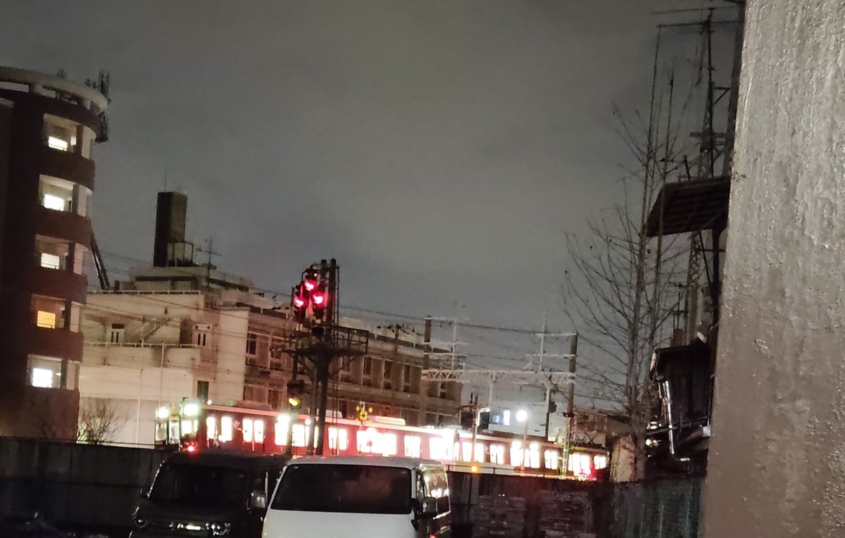【現場の状況】『桂駅近くの踏切で阪急電車止まってる』#阪急京都線 西京極駅~桂駅で人身事故 #阪急千里線 #大阪メトロ堺筋線 など遅延2月11日 #阪急電車